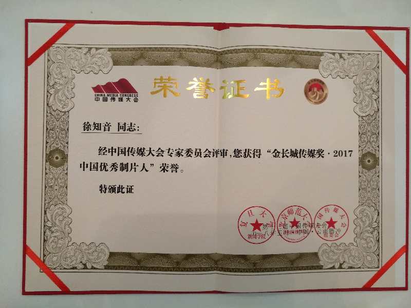 第十三屆中國傳媒大會董事長徐知音捧回優(yōu)秀制片人和優(yōu)秀制作公司獎