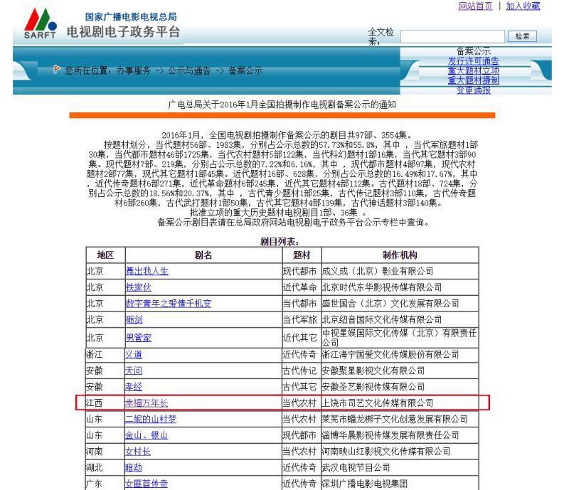 公司新作電視劇《幸福萬年長》今日取得廣電總局公示。歡迎有合作意向的單位與個(gè)人與我們聯(lián)系。